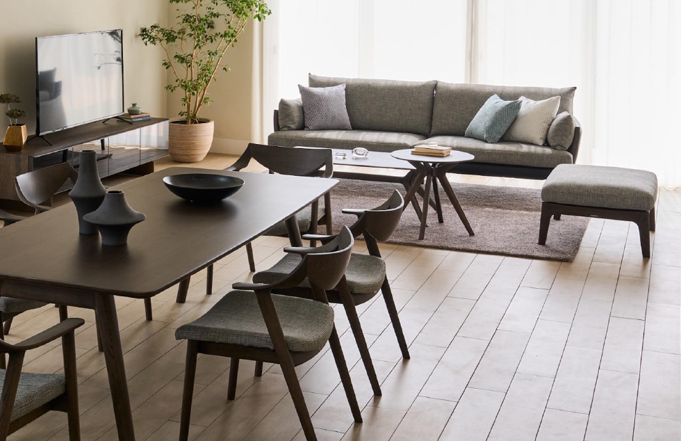 カリモク家具木製家具国内生産のトップメーカー。愛知県に本社、工場を構える。「品質至上」を理念に、天然木の素材を活かし、最新の科学技術を取り入れながら人間工学を追求し、快適なインテリア空間を提案し続けている。