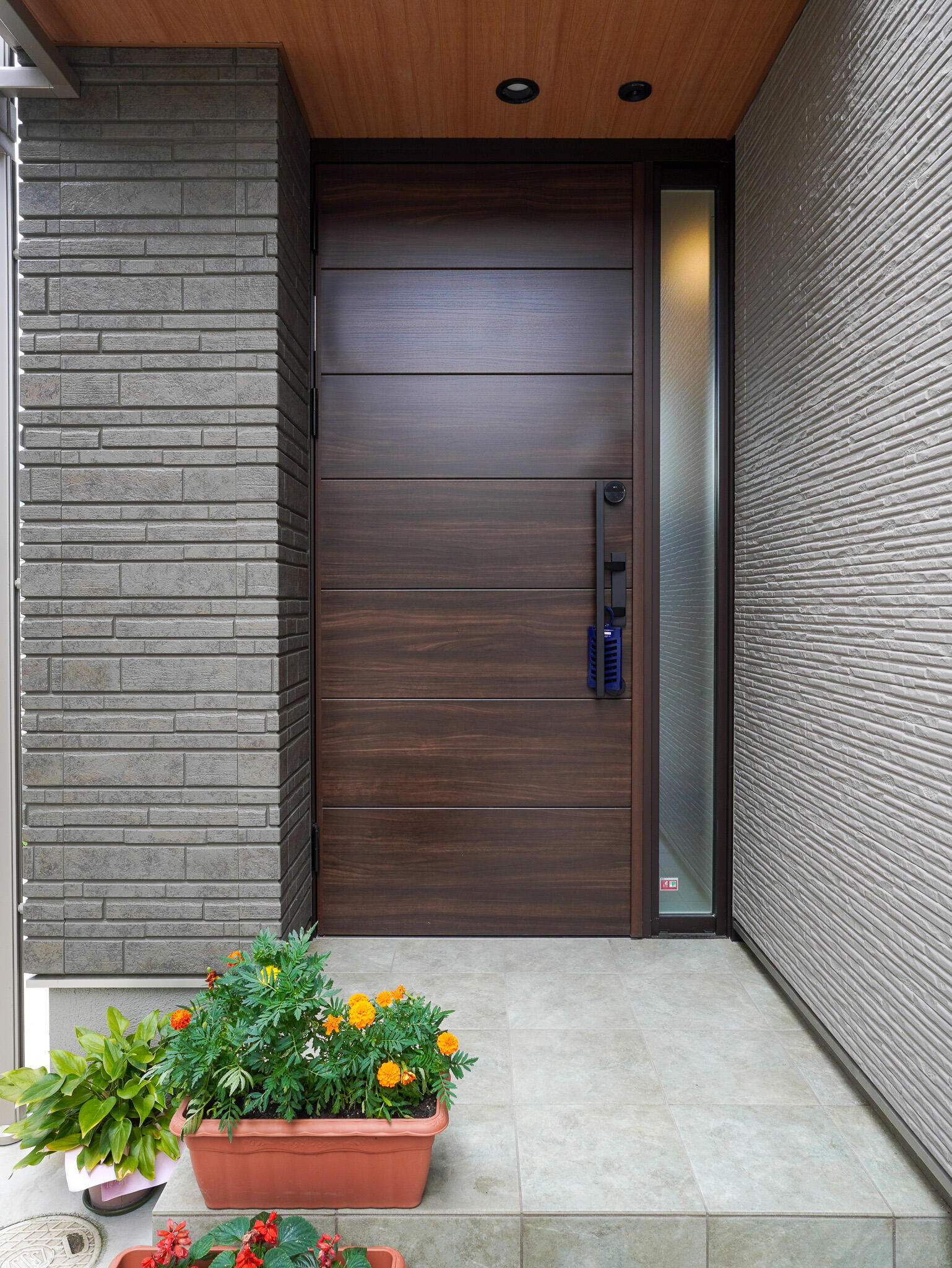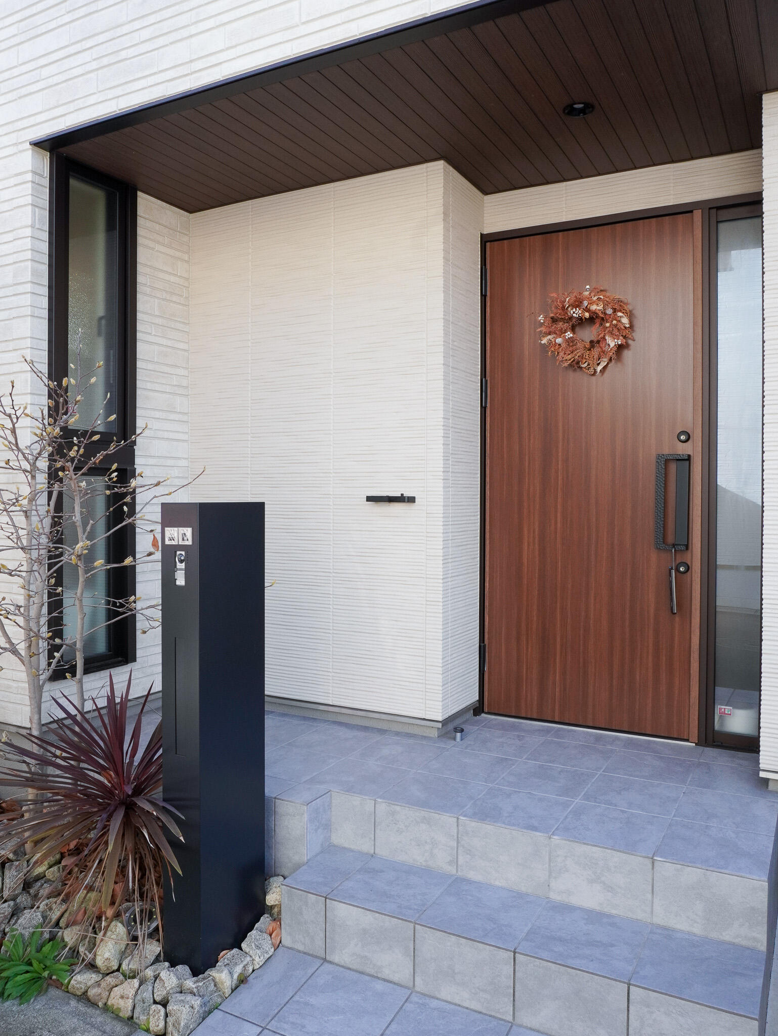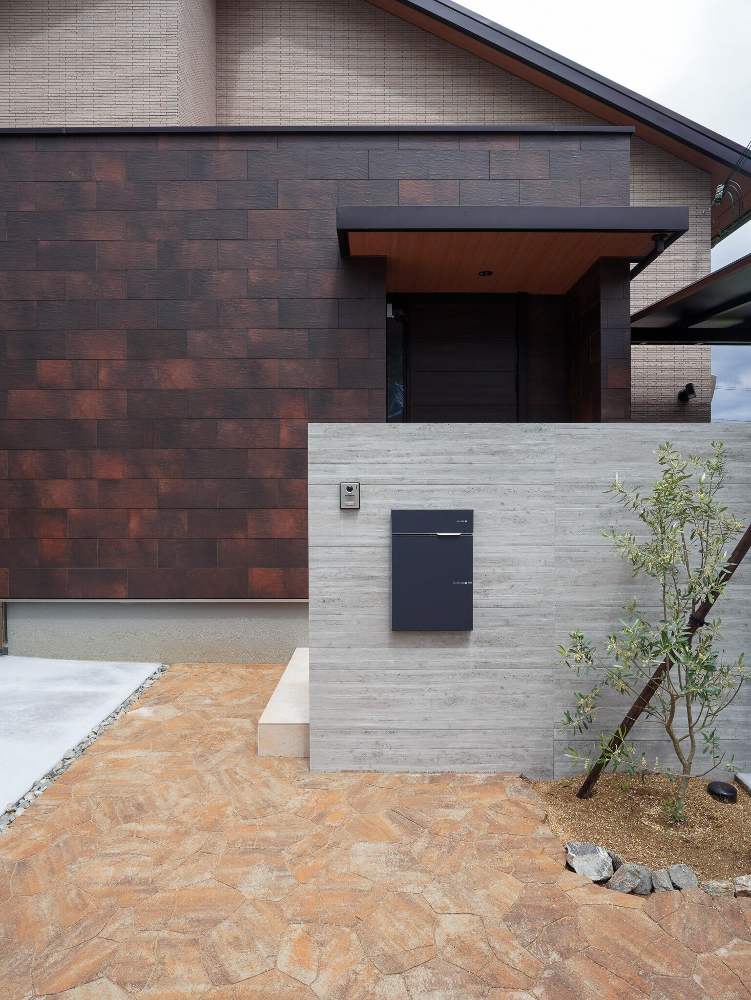 外装に選定した大判タイルは、