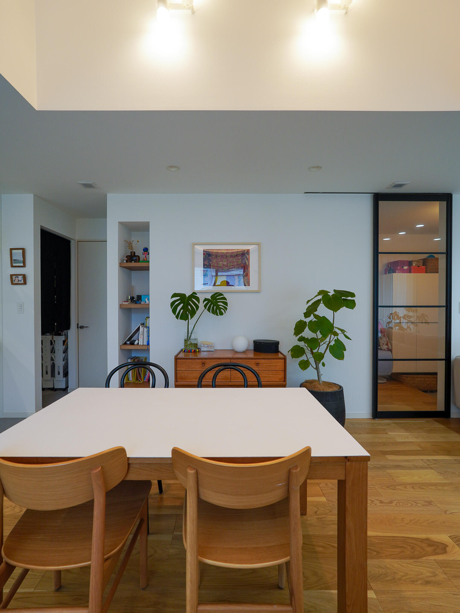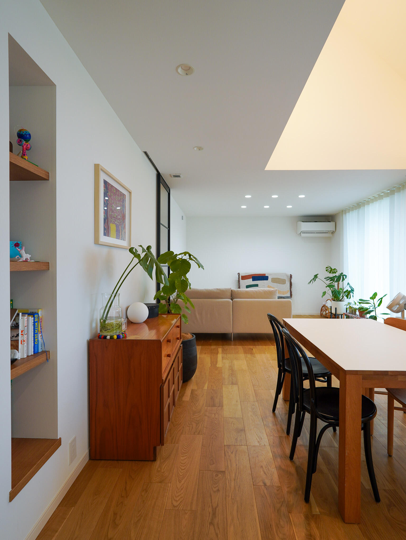 モダン家具と北欧家具、照明を組み合わせ、