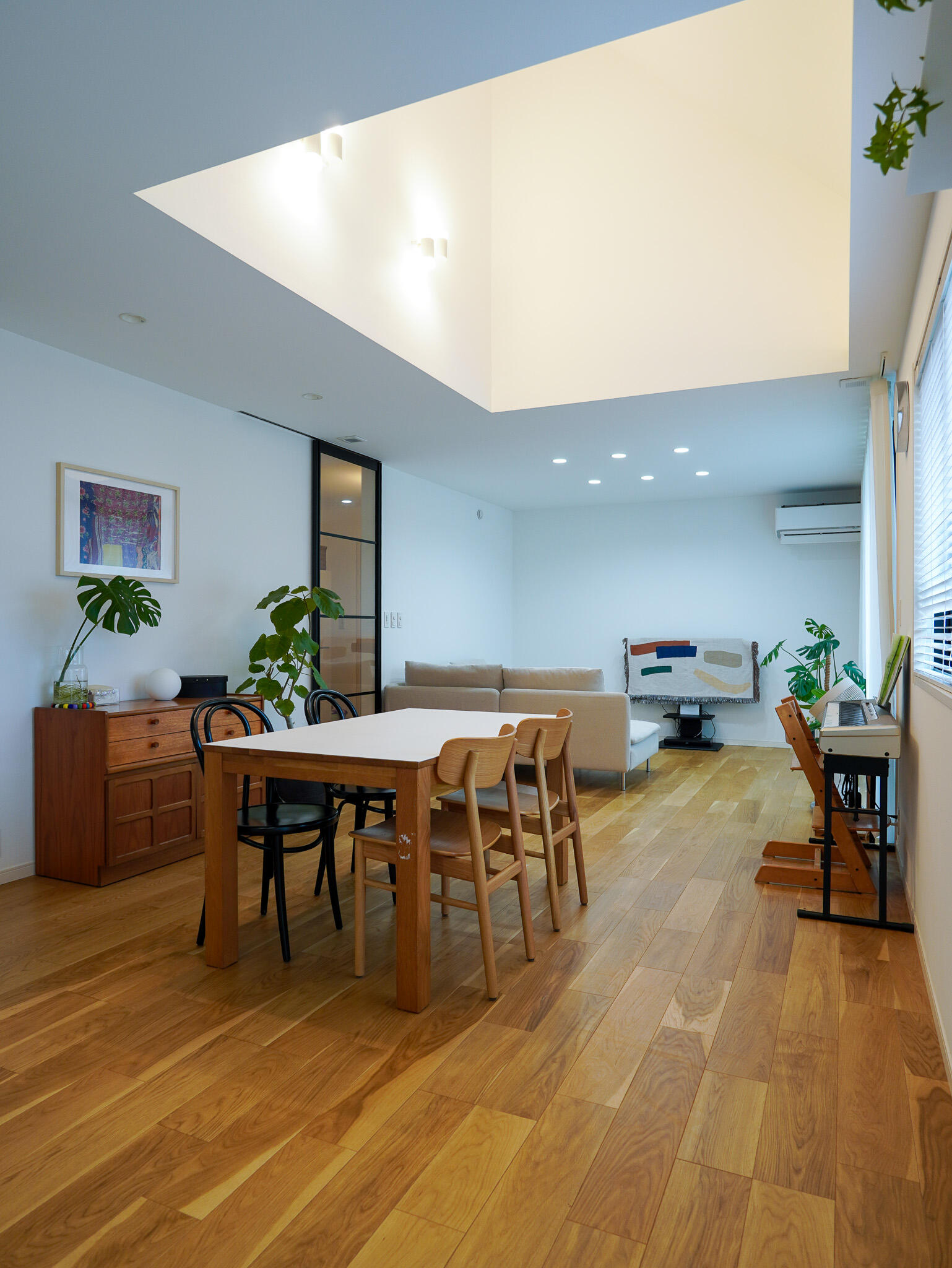 3.5mの高天井の開放感と光が降り注ぐ、
