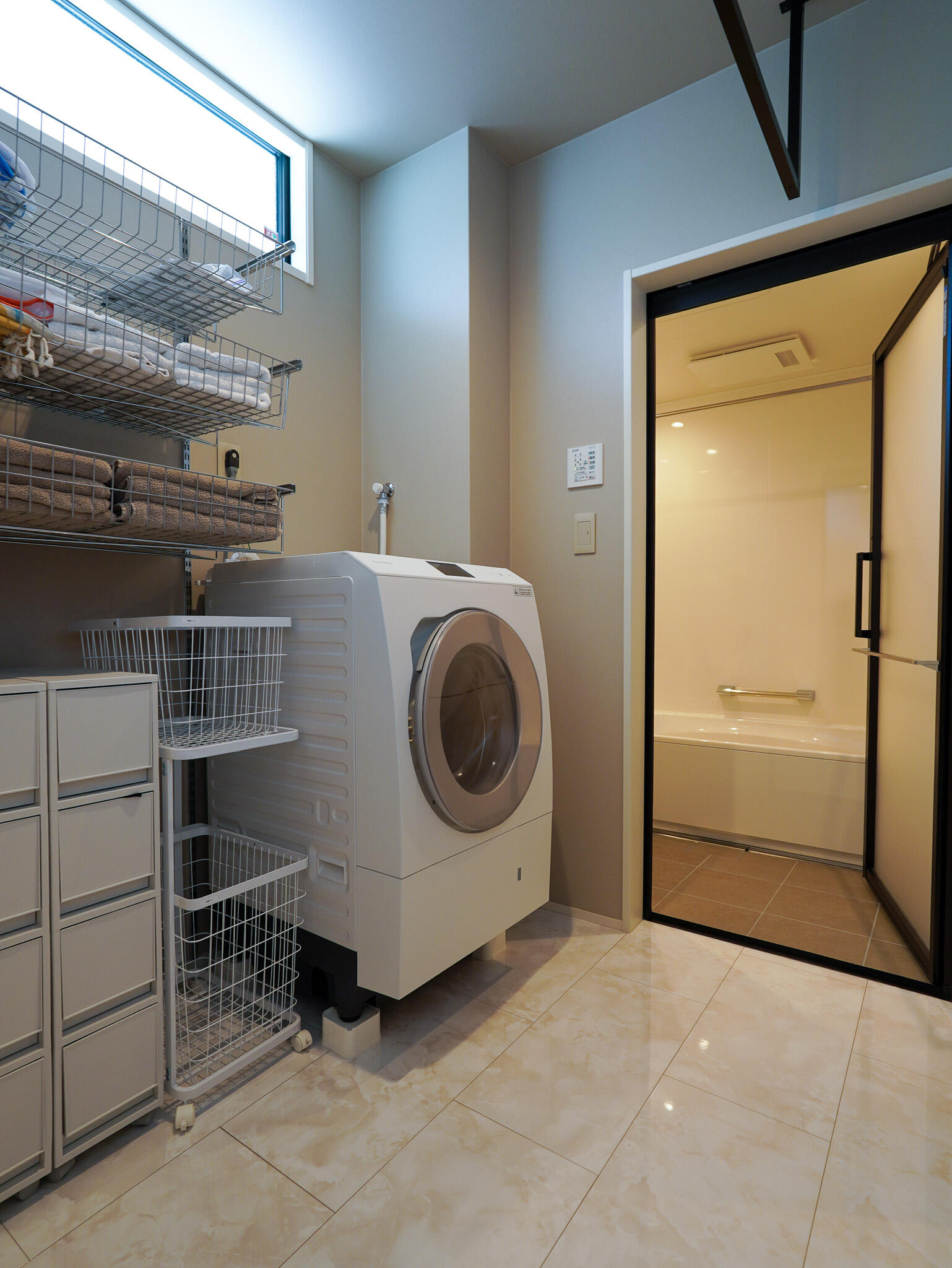 ガラス扉付きの大容量クローゼットや回遊動線など、暮らしを心地よく整える工夫もたくさん。