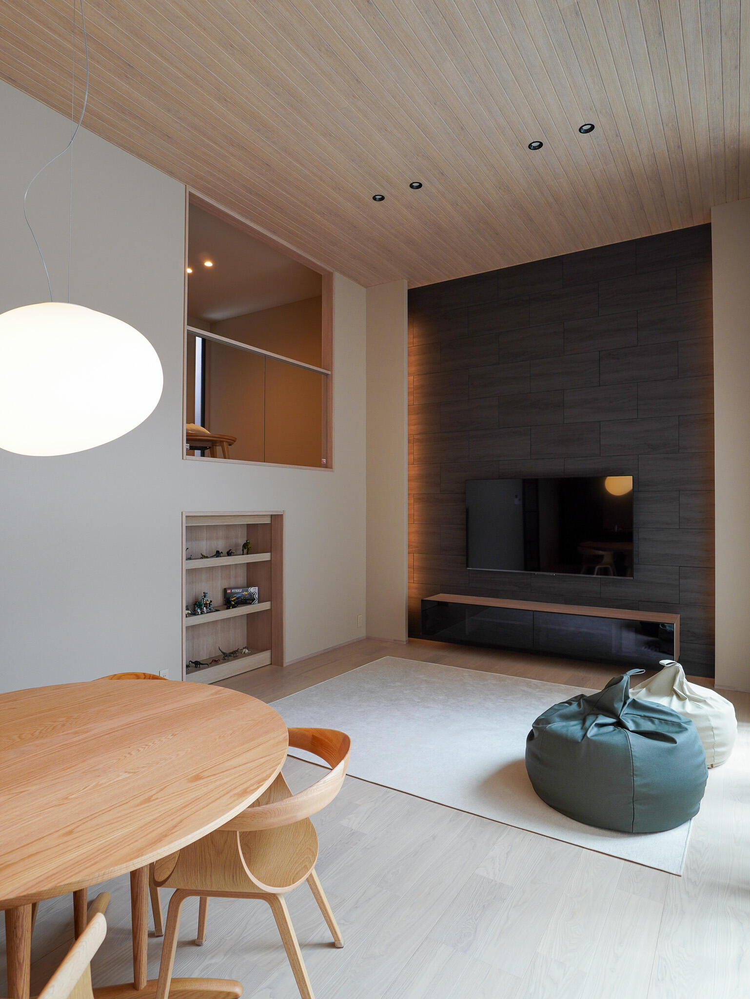 高天井の開放感あふれるリビングを中心に、趣味が詰まった秘密基地のような「蔵」、自分時間を愉しむスキップフロアを配置。個の時間を大切にしながらも互いの気配を感じられる、程よい距離感が魅力です。