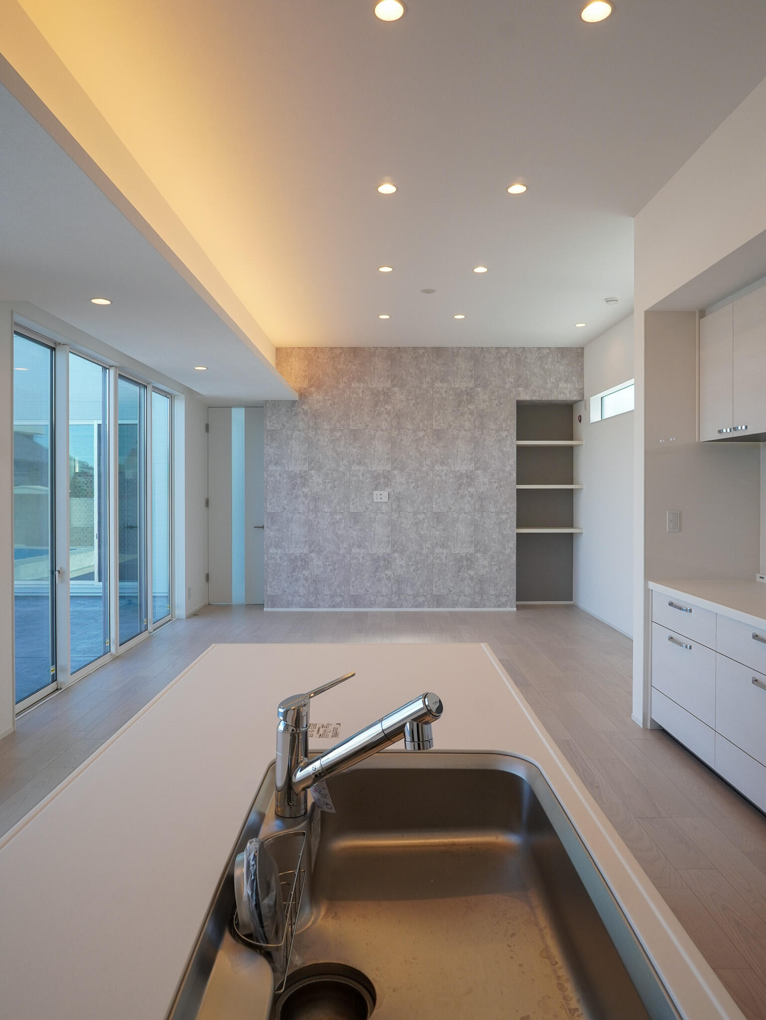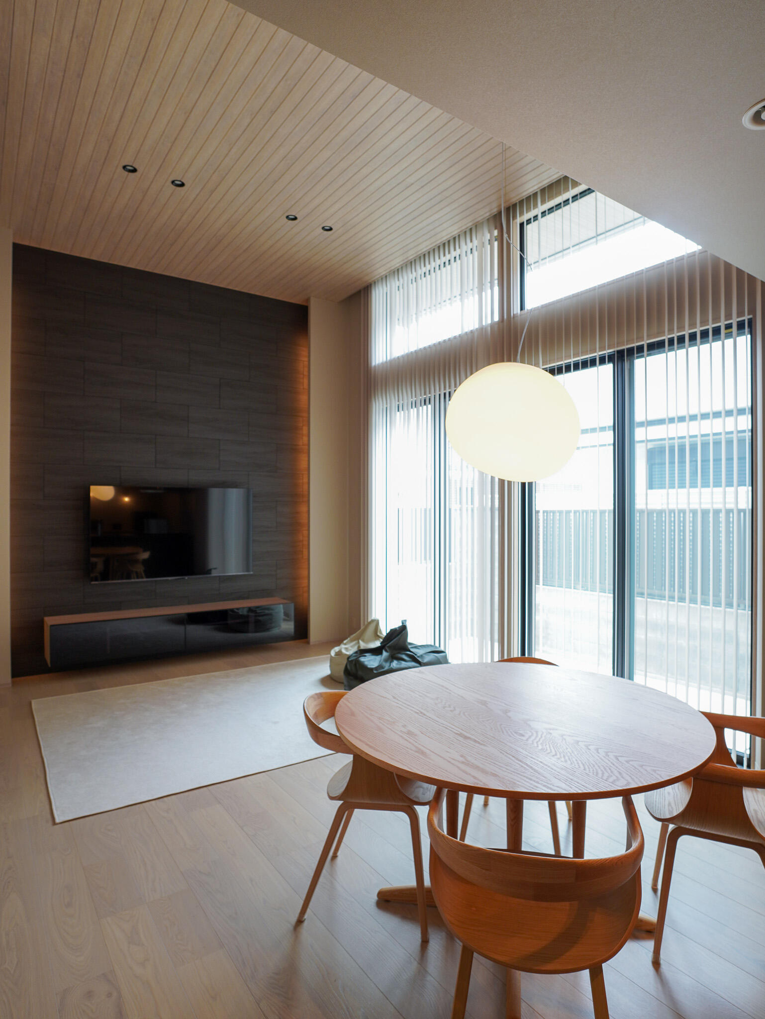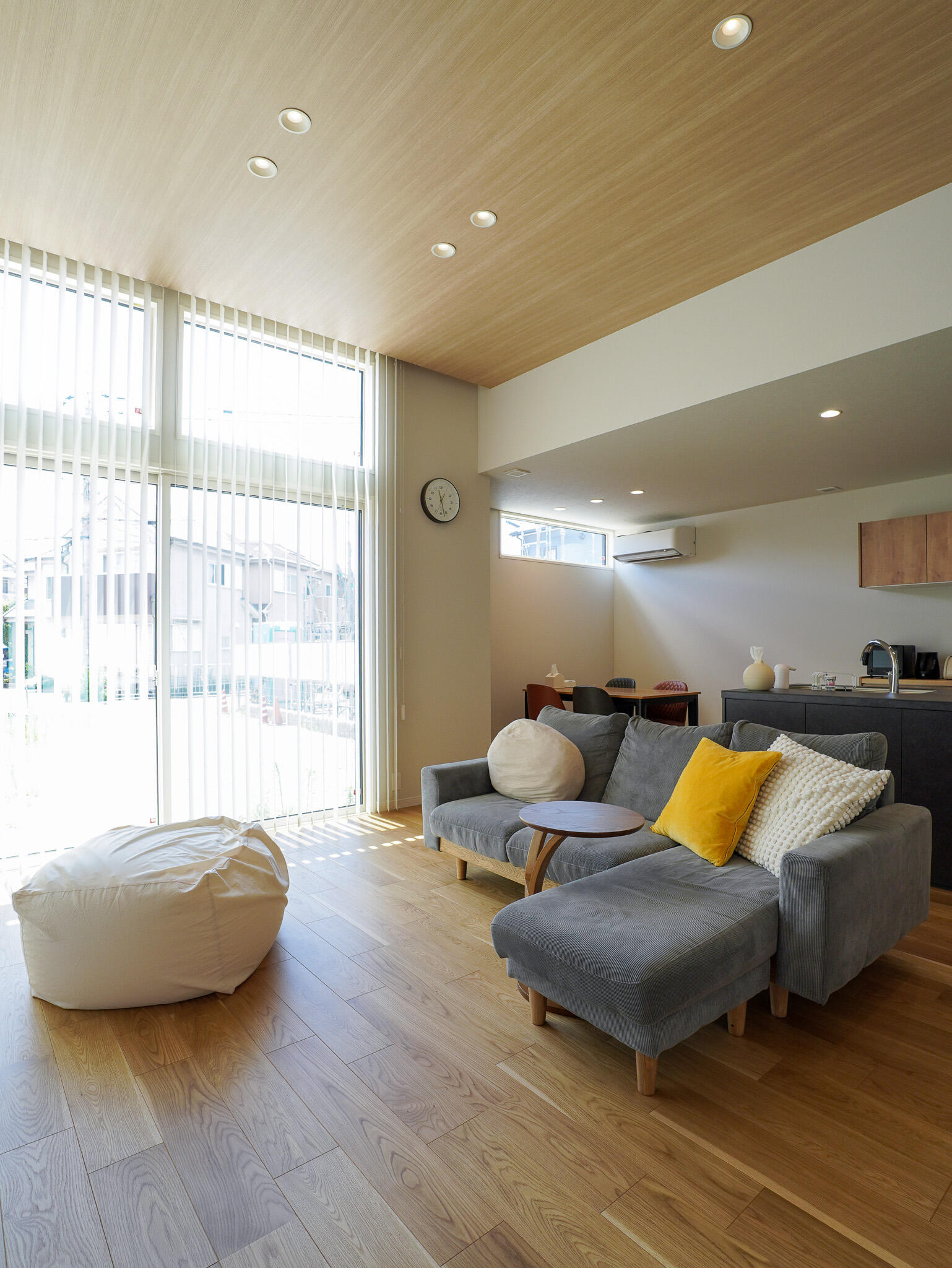 大きな窓からたっぷりと自然光を取り込み、室内は一日を通して心地よい明るさに。