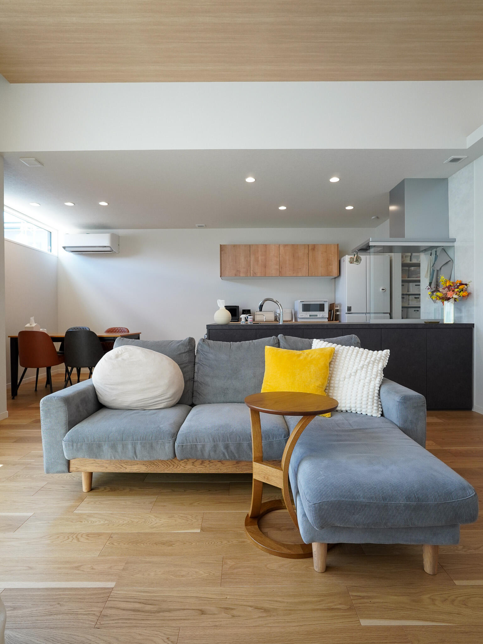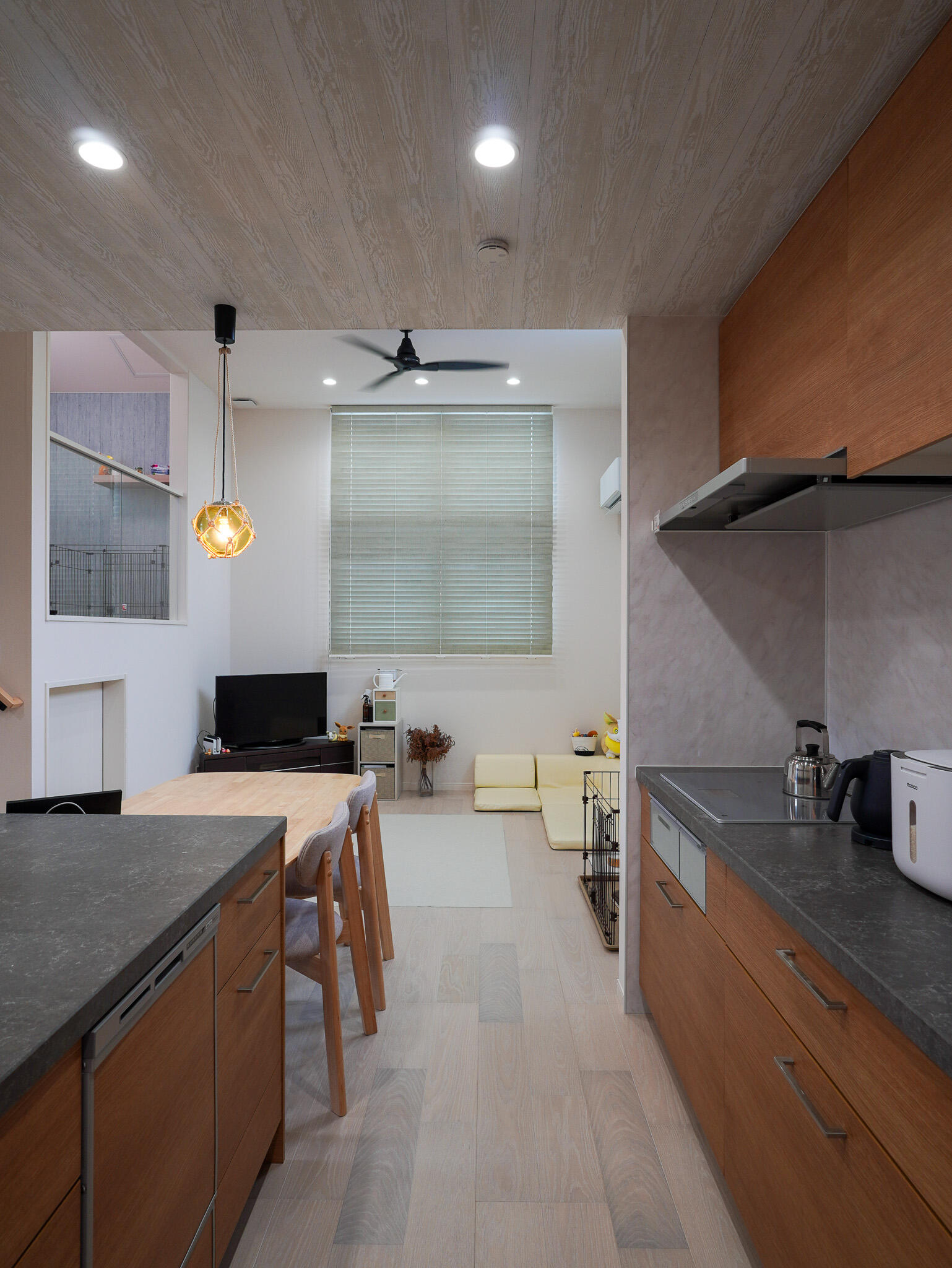 LDKは高天井で明るく天然素材の質感と