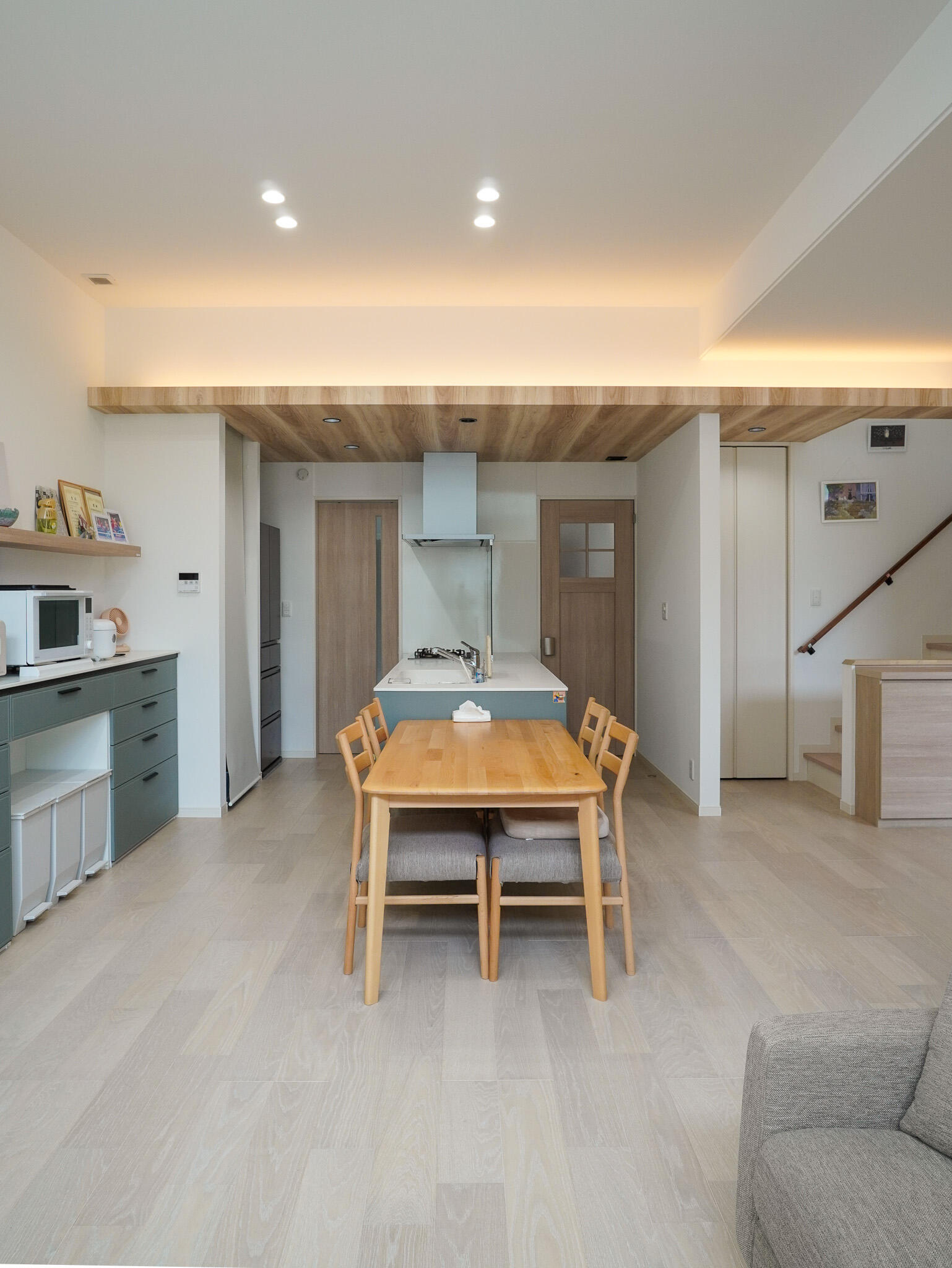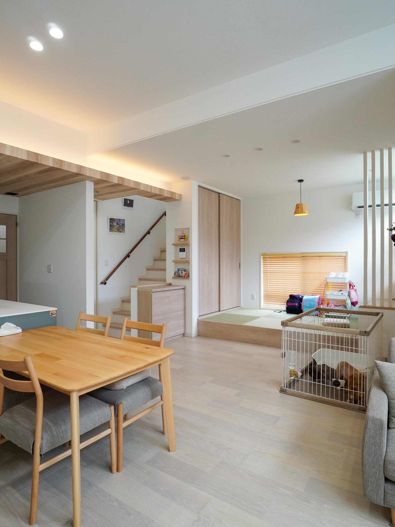 リビング、ダイニング、スキップフロアの和室が