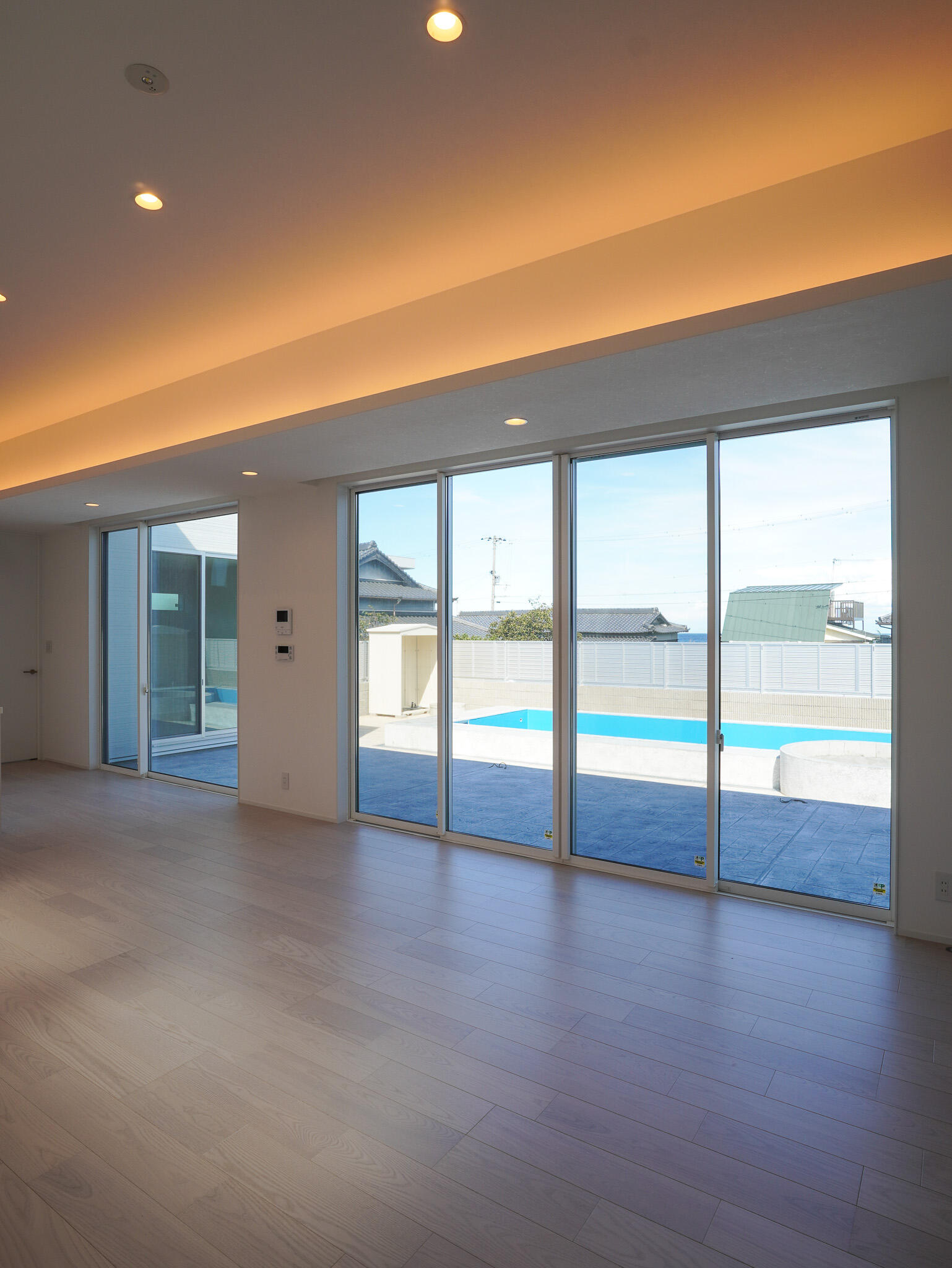 大開口の明るいLDKやプール付きのコの字型の中庭は、