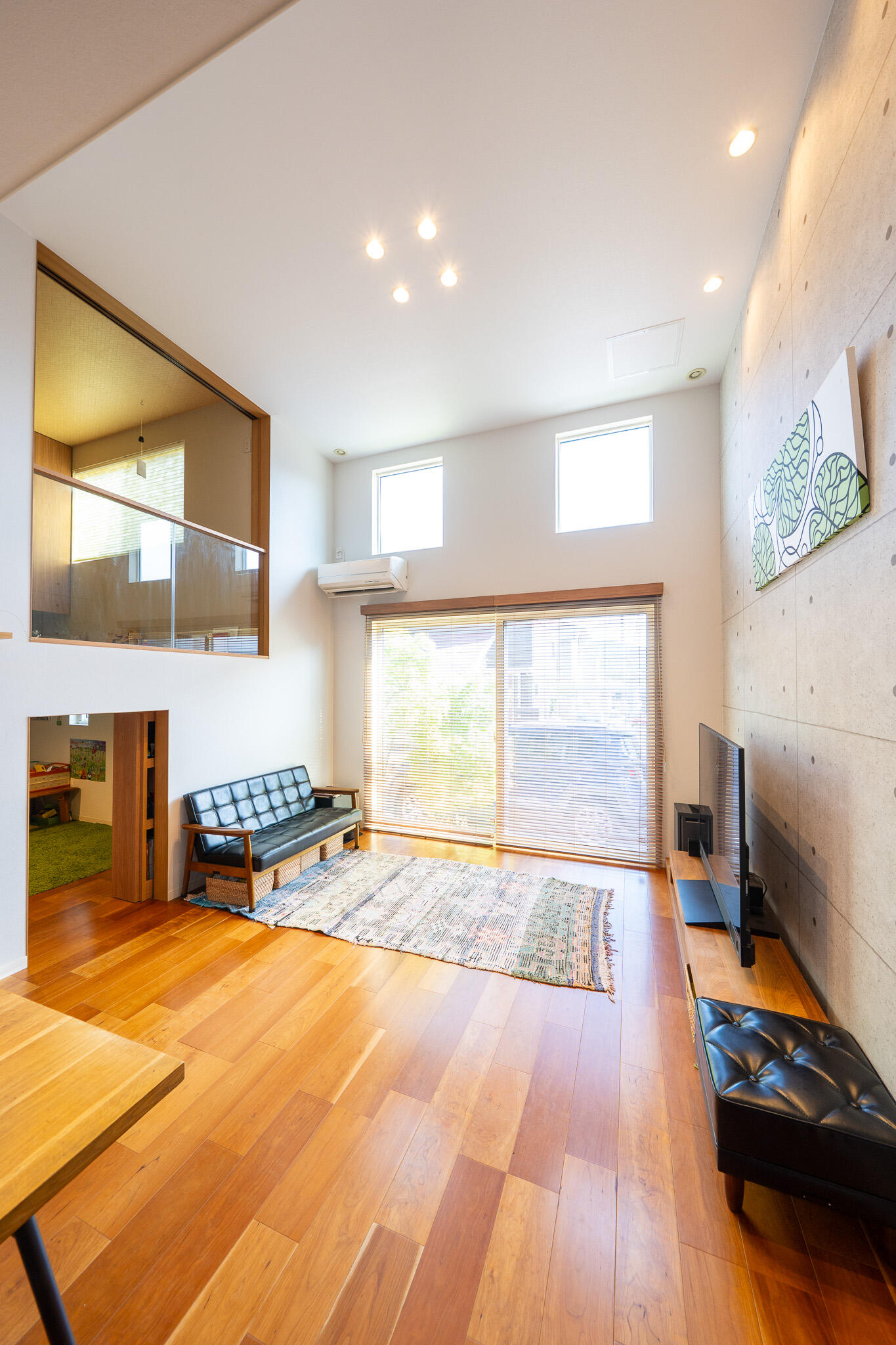 吹き抜けリビングで