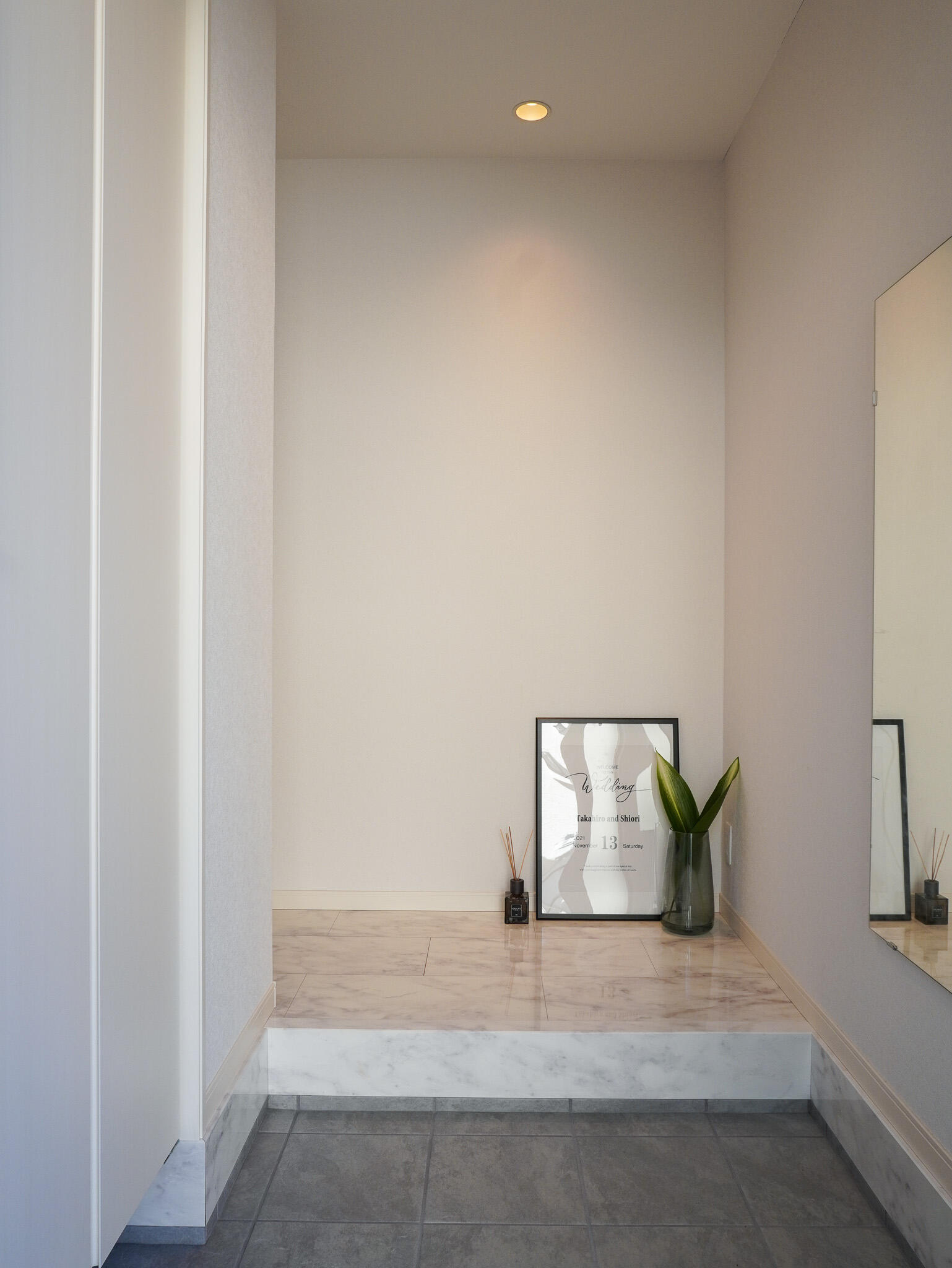 高天井で開放感があり、高級感溢れる玄関が出迎えてくれる