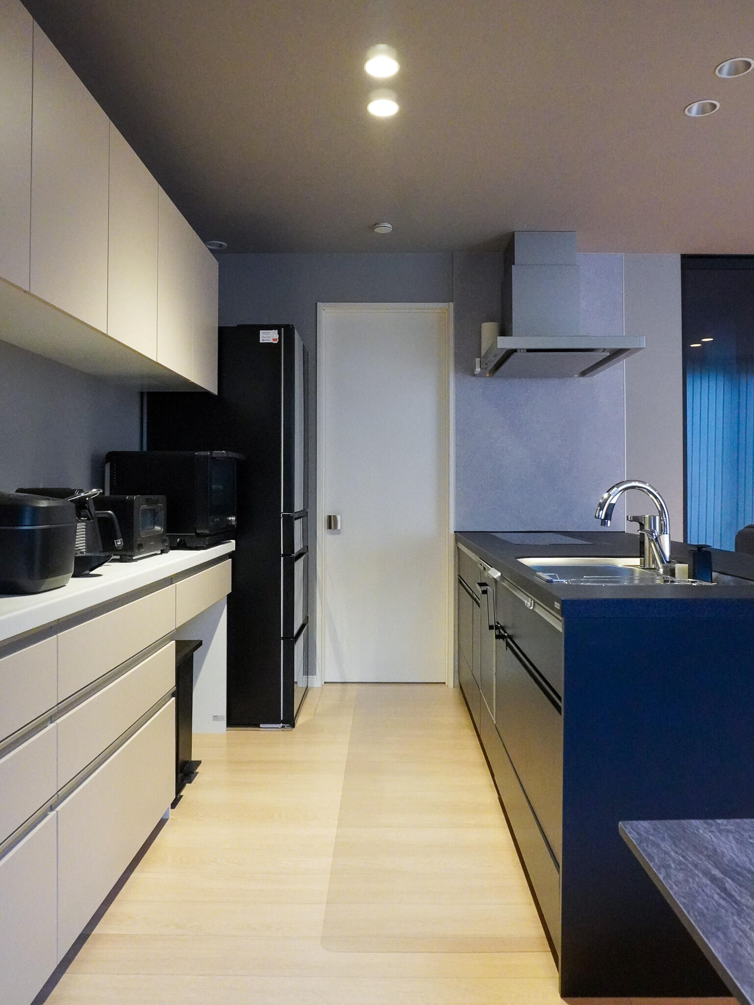 無駄を削ぎ落としたシャープなラインに、素材の重厚感が映えるラグジュアリーな空間。