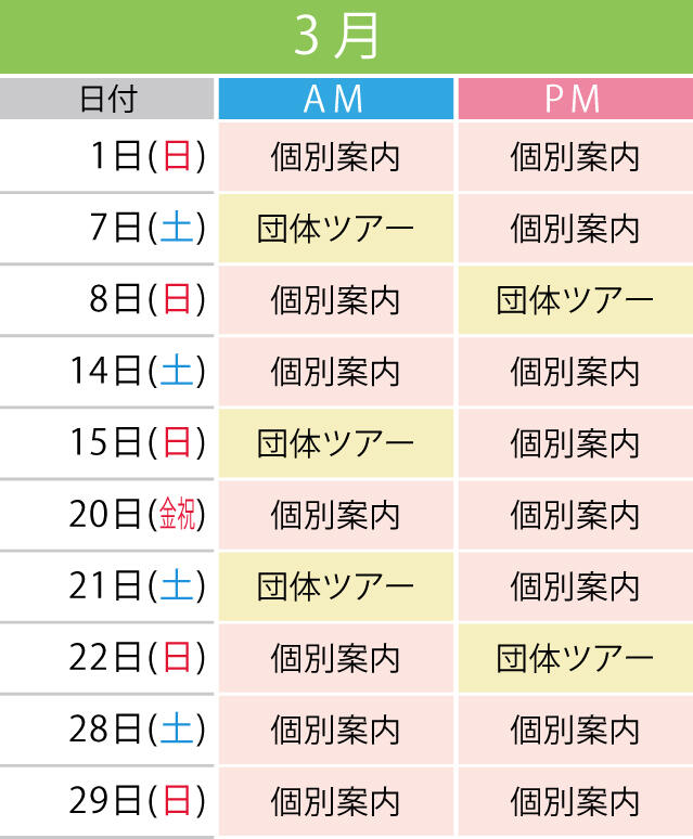 住まいのテーマパーク見学会は、下記スケジュールにてご案内しております。ご希望の日程をお選びください。