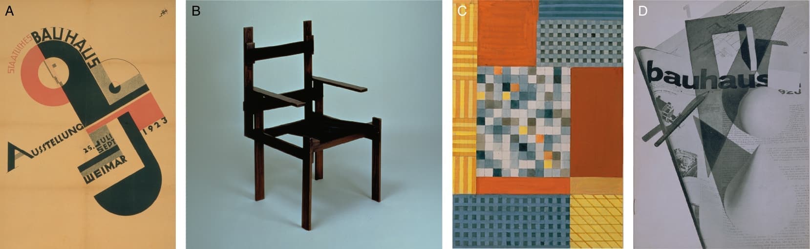 校舎のいたるところで見ることができる壁画には、バウハウスの基礎教育で繰り返し取り上げられた円・三角形・四角形の基本形と、赤・黄・青の基本色が用いられている。この幾何学形と原色は、工房でのデザイン開発のよりどころとなっていた。