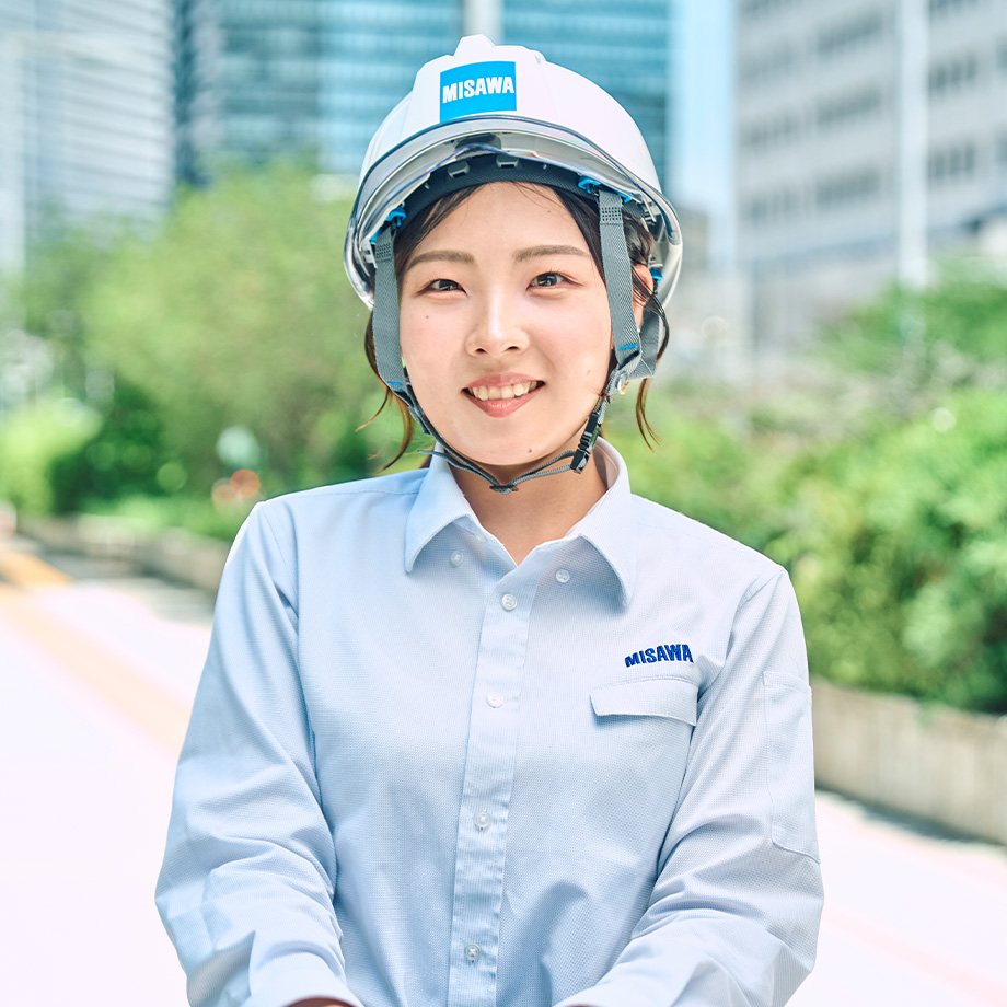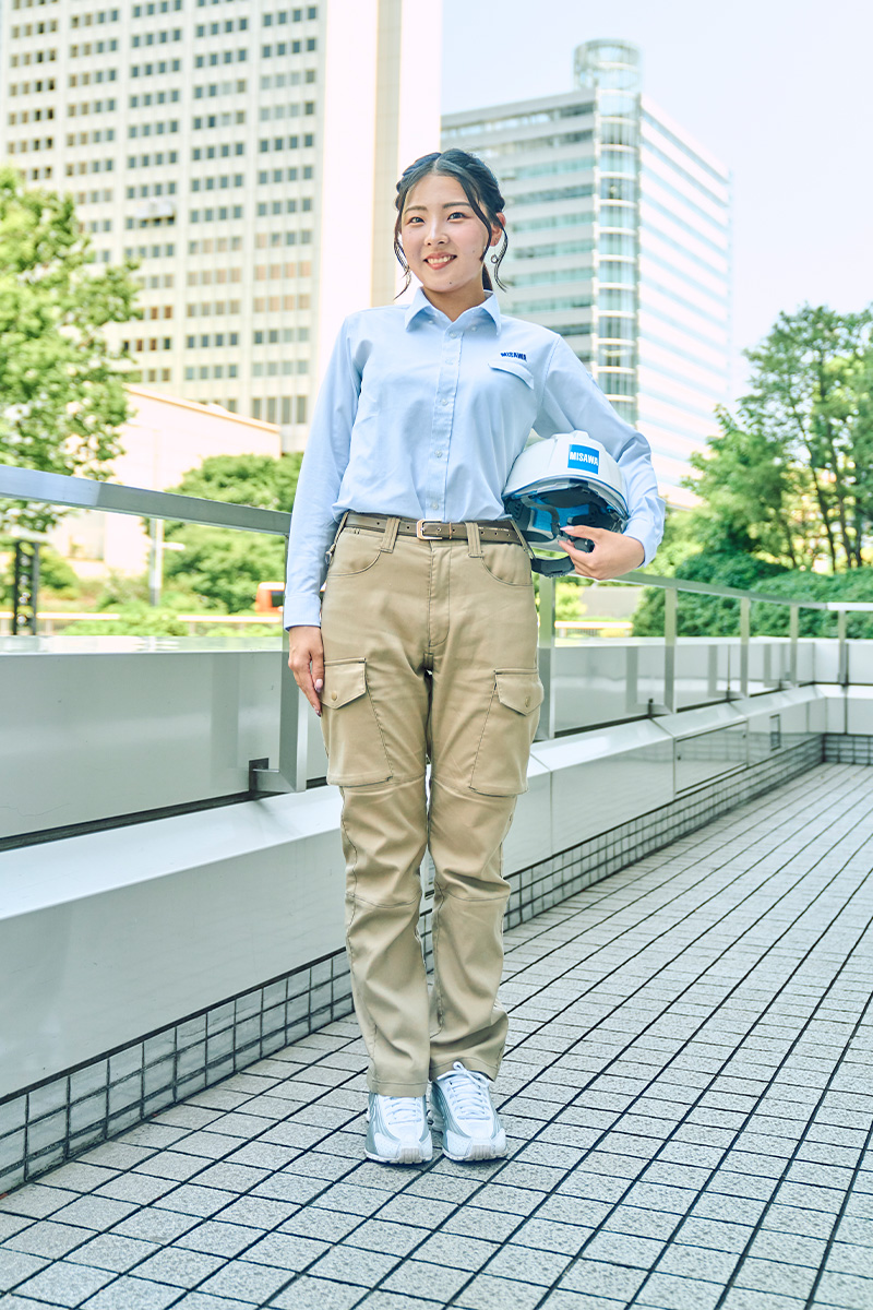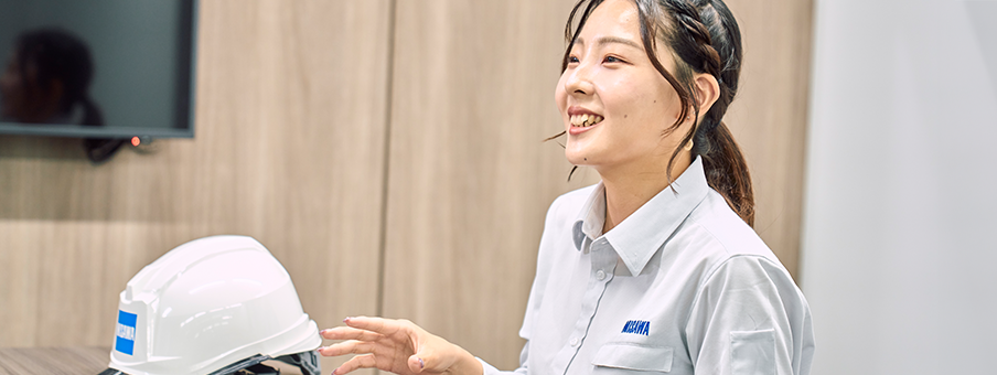 配属された建設部で現場管理の仕事に就き、建築物や設備の構造や仕組みを知ったり、業者さんや職人さんとコミュニケーションを取ることを楽しんでいる。