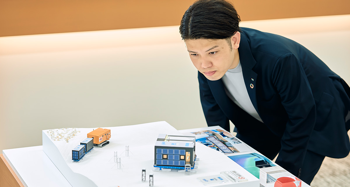主務である耐久技術課の仕事と並行して、「かぐやプロジェクト」にも兼務として携わっています。このプロジェクトは、南極昭和基地での建物建設、さらにその先に月面での有人拠点への応用を目指したものです。私はその中で、MISAWA UNIT MOBILITY『MOVE CORE』の設計などを担当しています。