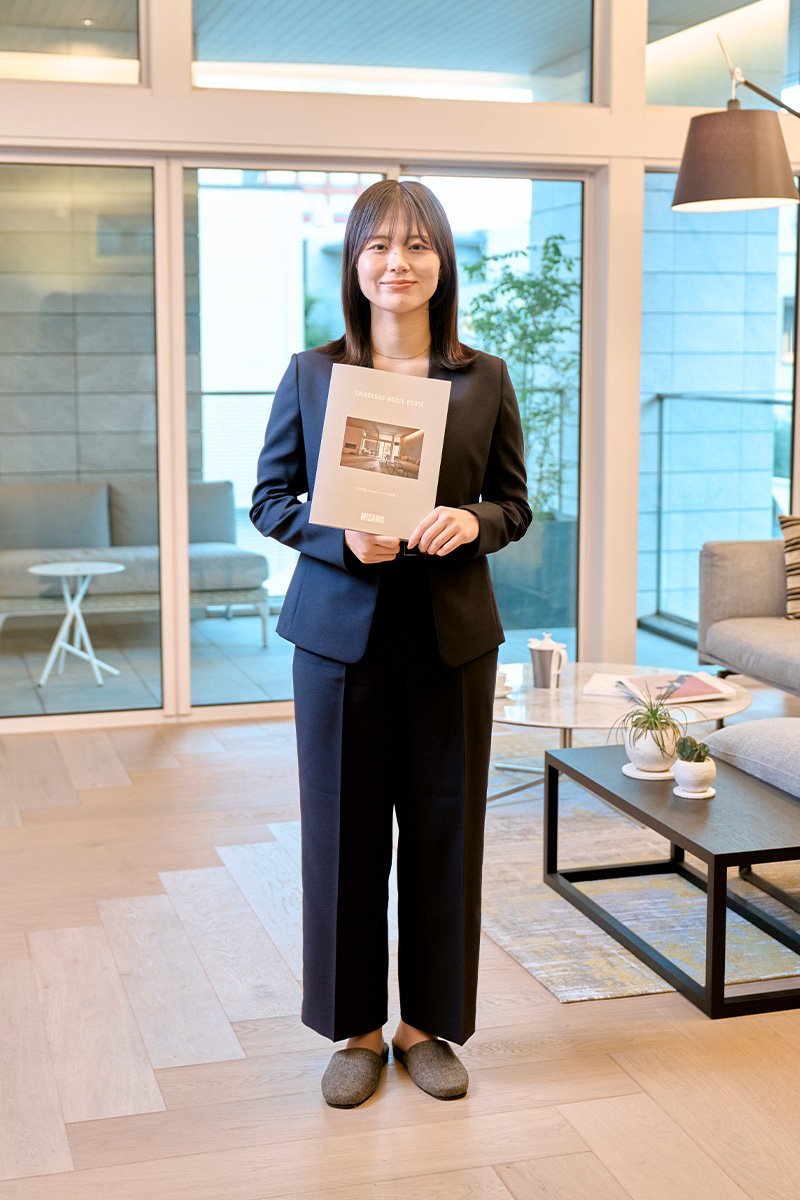 大学で専攻していた衣食住にまつわる会社を志望する中で、ミサワホームの面接を受けた際、社員の方々が私の個性やパーソナリティ、趣味にまで深く興味を持って質問してくださったことが印象的でした。他の企業ではあまり触れられないような部分にまで目を向け、一人ひとりの人間性を尊重してくれる社風こそが、お客様の多様な想いに寄り添い、住まいを作り上げることができるのだなと感じ、入社を決めました。