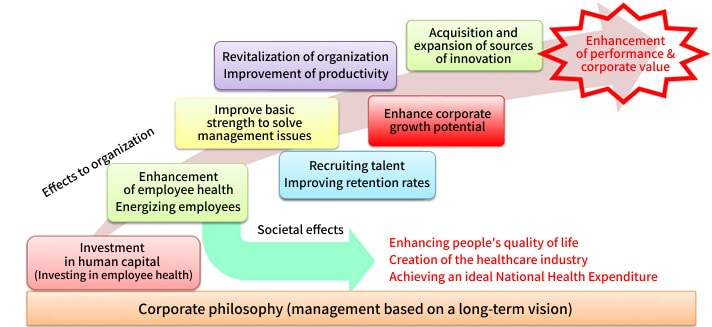 Misawa Homes promotes health management by publishing five health management indices such as the White 500 continued acquisition, the smoking rate and employee satisfaction.