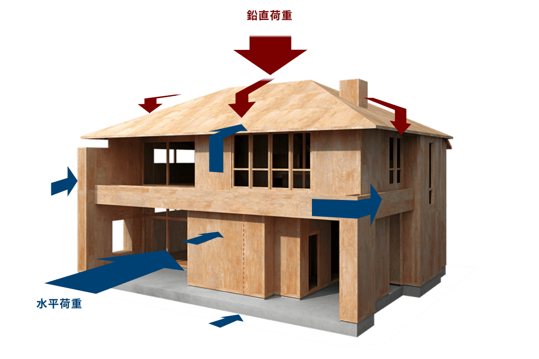 荷重を建物全体で受け止め、高耐震性能を発揮する
