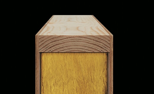 高強度・高断熱の120mm厚木質パネルを採用した、