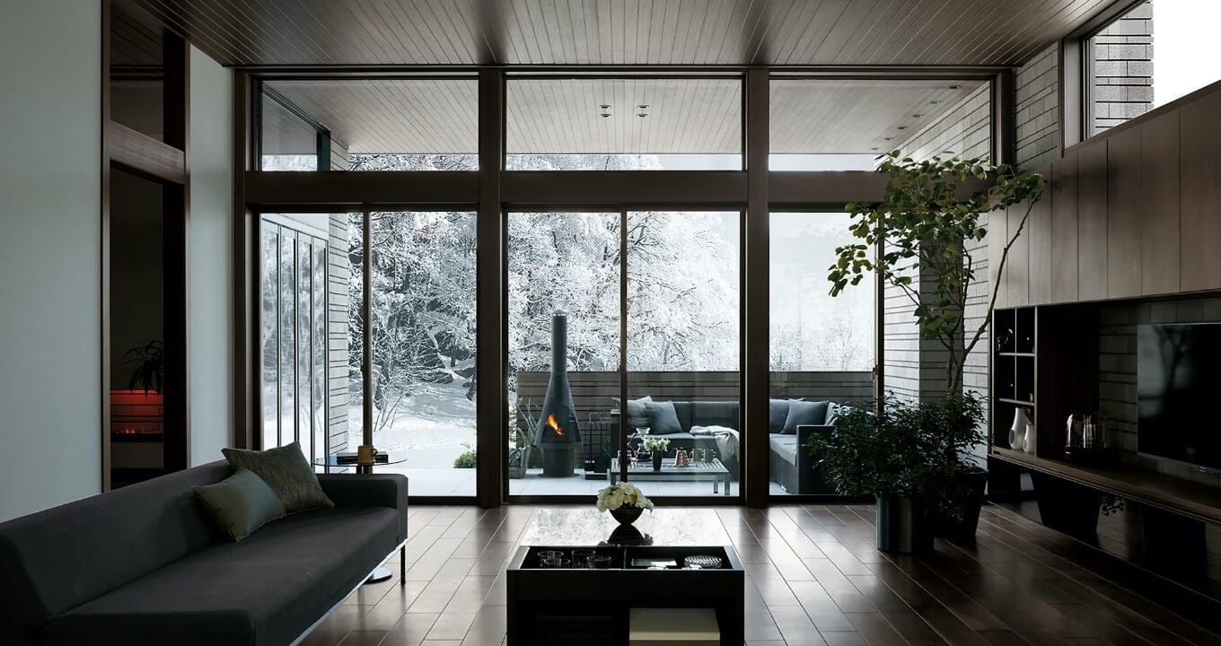 高断熱の「木質パネル」と「AZサッシ」を標準仕様に採用。さらに「高断熱玄関ドア」などのアイテムを採用し、