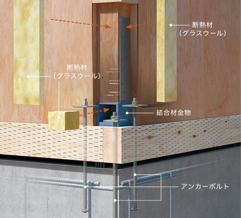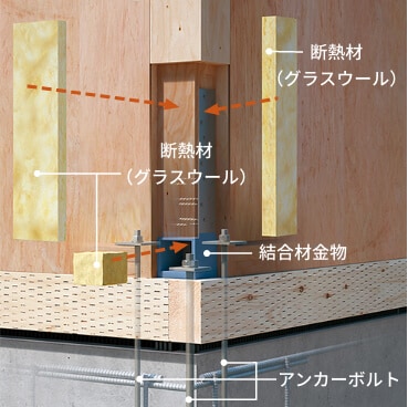 アンカーボルトと高耐力の結合材金物による高耐力仕様を