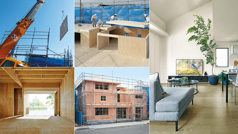 厳格な品質管理のもと、高精度で工場生産される木質パネルは、天候や作業者の技量に左右されやすい「現場施工」とは異なり、高品質で安定した性能を実現することができる。工場から出荷される部材には建築現場での作業手順に即した施工連番がつけられており、組み立て時の間違いを防止するとともに、現場作業の手間も短縮する。木質パネルなどの部材は現場工期の進捗にあわせ効率よく搬送される。システム化された現場施工体制のもと、施工図面に基づき、正確・スピーディに施工。現場作業を大幅に軽減している。
