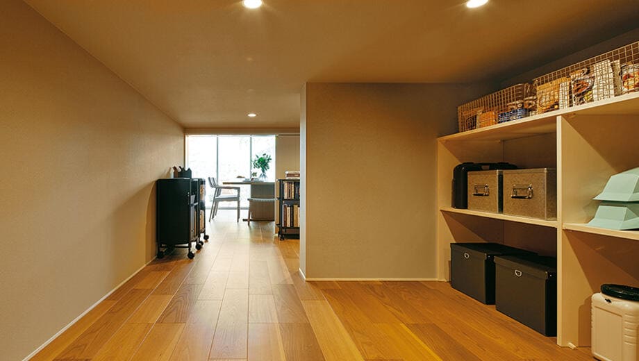 ミサワホームが独自に開発した大収納空間「蔵」は、床面積に算入されることな く※2 収納力がアップ。ミサワホームの木質パネル接着工法なら好みのフロアに設けることが可能。