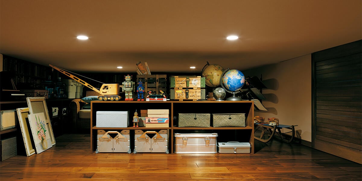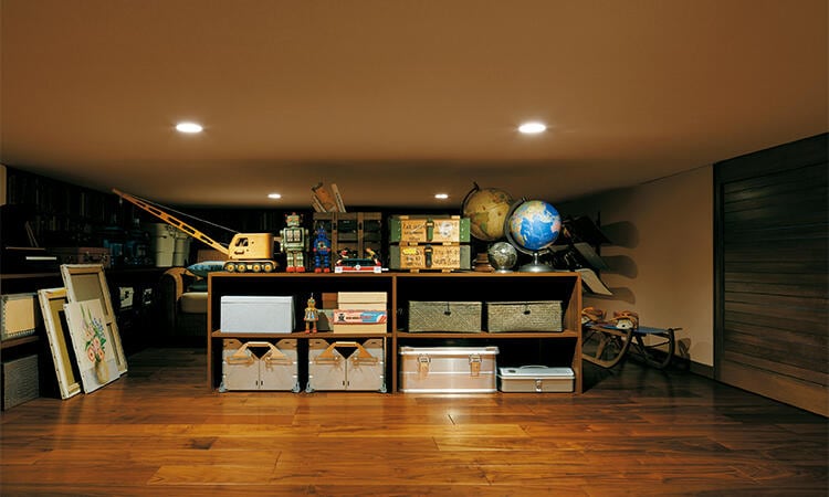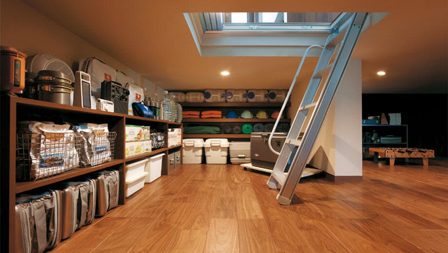 一般的な押入れなどでは不可能な大収納力を実現。日常使うモノはもちろん、季節のアイテム、思い出の品など、家族のあふれるモノを丸ごと収納できるので、居住空間はいつもすっきり。