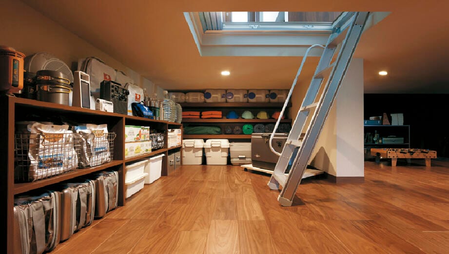 政府の中央防災会議は、1週間分程度の食料品・飲料水の備蓄を推奨しているが、「蔵」には家族4人、2週間分の備蓄品を余裕で収納。自然災害で物流がストップした際の在宅避難生活を支えてくれる。