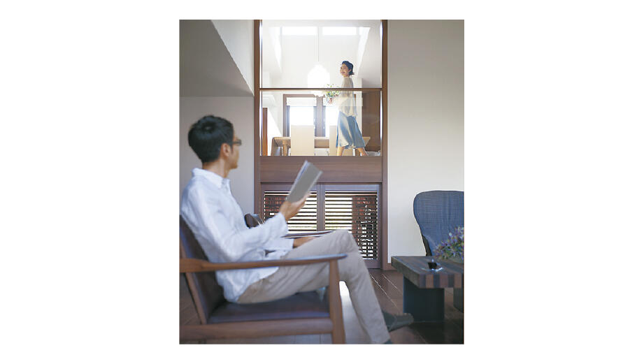 「蔵」の上が0.5階ぶん高いフロアとなるため、0.5階刻みでつながるスキップフロアが可能に。