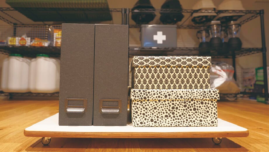 キャスター付きのワゴン。「蔵」の中をすっきり見せながらモノをしまうことができ、収納したまま運び出すこともできる。