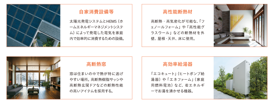 化石燃料中心から再生可能エネルギー中心への変革をめざすという社会の要請に応える住まい。断熱等性能等級6以上で、従来のZEHを上回る基準となる一次エネルギー消費量削減率を満たすことなどが必要だ。