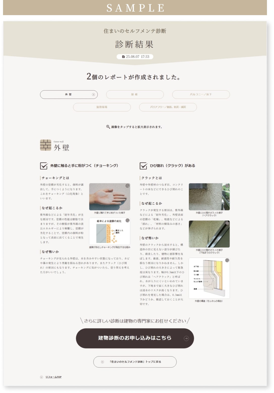 気になる項目にチェックするだけで“ご自宅の現状”を