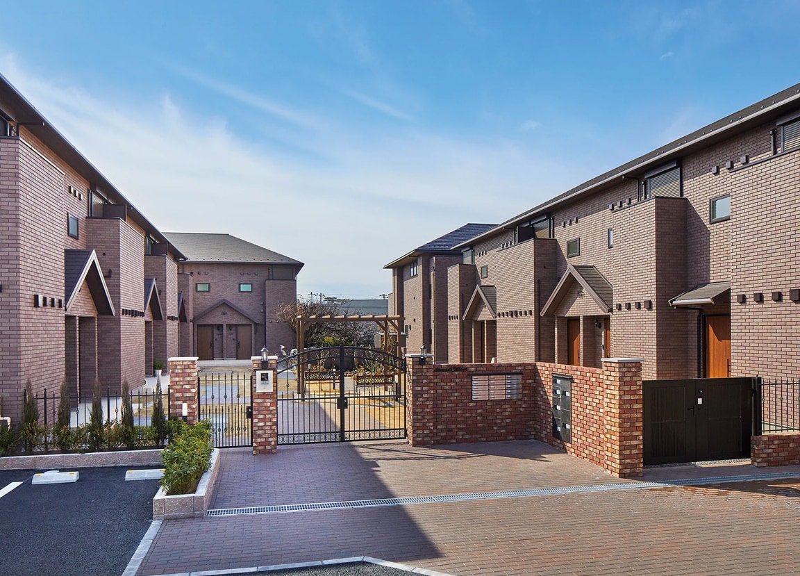 門扉やアプローチ、タイルや外灯まで世界観を徹底し、憩いの場やプールなど、暮らしを豊かにする魅力の詰まった、地域のランドマークにふさわしいまちなみが実現しました。