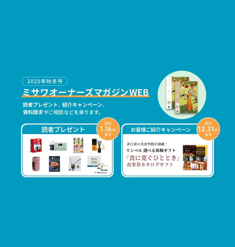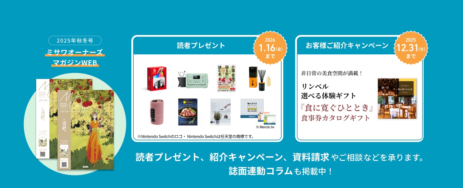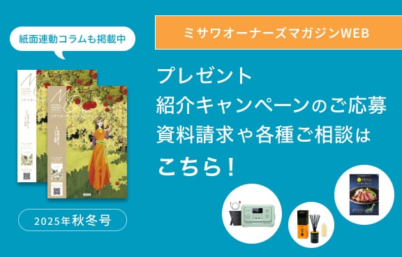 ミサワオーナーさま専用の住まいや暮らしに関する各種情報、サービスをご覧いただけます。