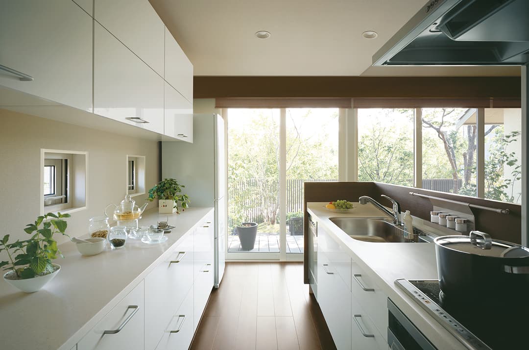 キッチンは、南の庭に面した明るい空間。“食”の時間を爽やかに演出します。