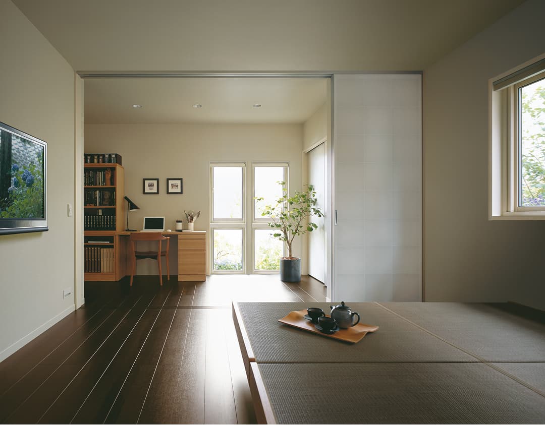 リビングに隣接する主室には、書斎や趣味室など多目的に利用できる