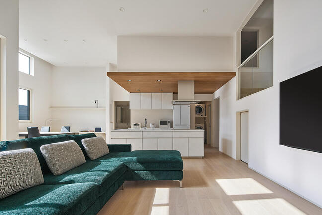 二世帯・7人家族のYさまご一家。以前から二世帯住宅にお住まいでしたが、2人のお子さまの成長に合わせて新たに二世帯住宅を建てることになりました。 テーマは「7人のご家族それぞれが心からリラックスできる個別の空間と、一家が集う団らん空間をいかに実現するか。しかも限りある敷地の中でいかに広さを感じられるようにするか」ということでした。 完成した住まいはそうしたご要望を見事に昇華。白とシルバーを基調にした洗練された佇まいの中に、大家族がゆったりと暮らせる上質な生活空間を実現しています。