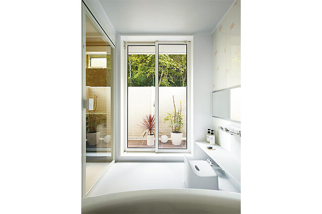 さらに和室の地窓やバスルームからも違った風情の庭の景色が楽しめます。Sさまのお住まいは、100坪の敷地とロケーションを上手に生かして、それぞれの場所から趣の異なる5つの庭が眺められるようにデザインされているのです。「設計デザイナーの佐々木さんが手描きのスケッチで提案してくださったプランに一目惚れでした」とSさまは振り返ります。