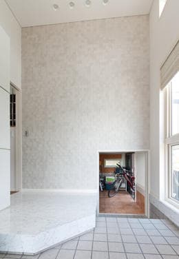 ちなみに建物の一部のように収納されているバイクはご主人の宝物。冬の乗らない時期は一階の蔵のなかにしまえてしまいます。