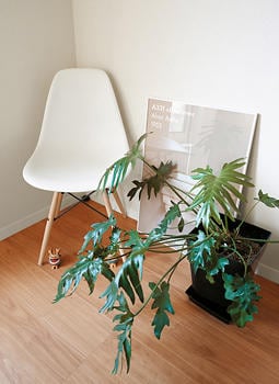 一方、2階の子世帯はナチュラルな北欧テイストの住空間に。階段上のホールはご夫妻のセンスが感じられるミニギャラリー。イームズシェルチェアやインテリアポスターを飾って楽しまれています。「この椅子は、私の誕生日に妻がプレゼントしてくれた記念の一脚なんです」とSさまはうれしそう。