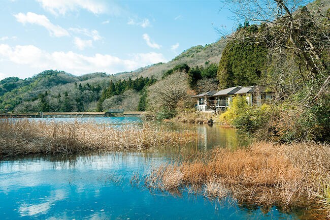 丹波の山の豊かな自然を背景に、青緑色の水をたたえる美しい大池にせり出すように佇むOさまの別荘。リビングのワイドな窓から広がる景観は印象派の絵画さながら。「夏になると池面に睡蓮の花が咲き、まるでクロード・モネの絵のような眺めです」とOさまは目を細めます。