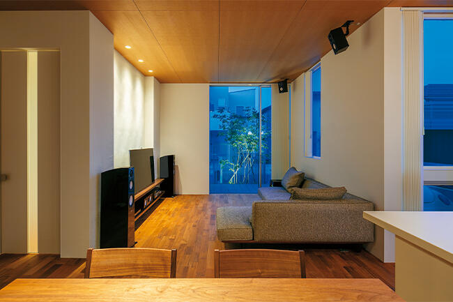 「一つのLDKの中に、庭へのつながり方や明るさに違いがあり表情豊かで、気分に合せて居場所を変えて楽しんでいます」とIさまは語ります。お二人の美意識をデザインしたお住まいで心地よい暮らしを満喫されています。