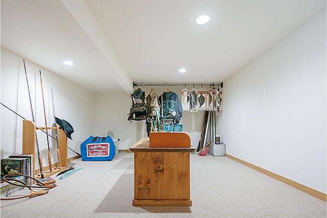 さらに木目を基調とした内装の室内には随所に収納スペースがあり、「下にモノを置かない生活が理想でしたので、この収納力が本当にうれしいですね」と奥さま。一方、ご主人はキッチンのバーカウンターがお気に入り。「仕事から帰ると、まずこのカウンターでくつろぐのが習慣になっています」