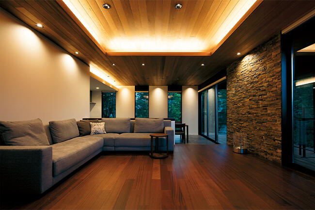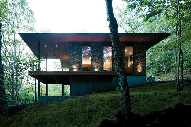 森の中にあり、森と一体化したKさま邸。自然に抱かれたくつろぎの隠れ家です