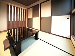 そのため、庭や広いアプローチからも玄関内部が見えることはありません。「見え隠れ」というコンセプトは、室内にも生かされていました。1階のダイニング側に「蔵」があり、その上が和室。ダイニングとは太い格子で仕切られています。