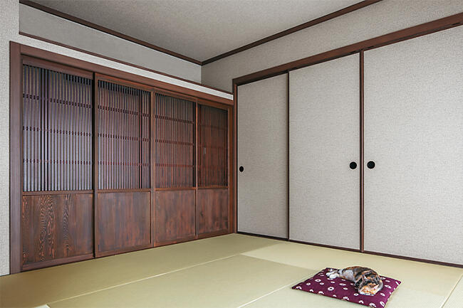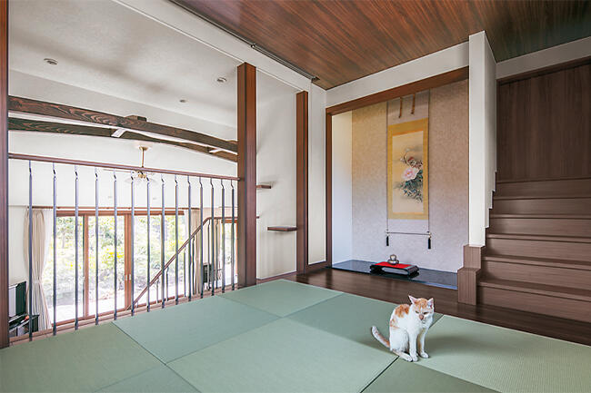 「冬は畳の間に炬燵を置いて、家族でお鍋を囲みたいですね。ここにもロフトタイプの収納をつくってもらったので、書籍や季節モノがたっぷりしまえて助かります」と奥さま。