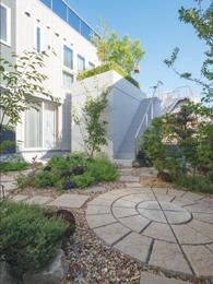 ピアノの生徒さんも含め、Oさま邸にはたくさんの人が集まります。お客さまが思い思いにくつろげるよう、2階にパブリックスペースとして広いダイニングキッチンとリビング、和室を設けました。ユニークなのは、このパブリックスペースの窓から、まるで1階から庭が見えるかのように、グリーンが眺められること。庭にある収納棟の屋上が緑化され、その風景が2階の窓に広がっているのです。