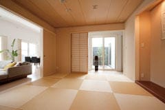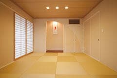 そして、とりわけご主人がこだわったのが、和室と坪庭、それにバスルームでした。和室は、来客用だけではなく、将来的にご両親との同居を考えてのこと。和室の扉を開け放つと、リビングとつながっているだけに、Fさま邸の広さがさらに強調されて、平屋ならではという印象です。