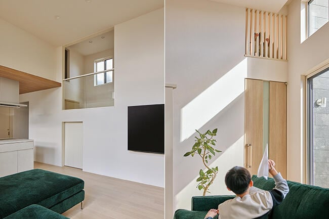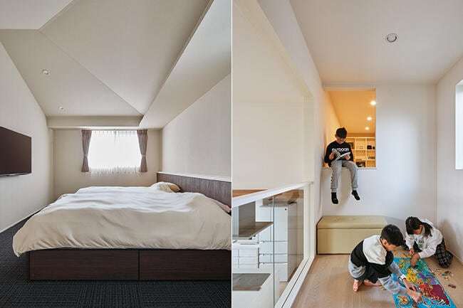 収納力不足を解決するために、分譲マンションから新築戸建へと住み替えたKさま。完成した新居は、4つの大収納空間「蔵」をはじめ、ファミリークロゼット、ウォークインクロゼット、パントリー、納戸も設け、圧倒的な収納力を実現しました。 「住宅メーカー4社を検討したのですが、3つのメーカーの提案は、大きな物入のような収納をつくるというプランでした。対してミサワホームは、『蔵』の上部をスキップフロアにしてLDKに高天井空間も設けるという、空間を縦方向にも活用する提案だったんです。大空間を設けながらGX志向型住宅の基準をクリアでき、耐震性の高さにも魅力を感じて、トータルでミサワホームに決めました」 ご主人が寒がりで奥さまが暑がり、3人のお子さまが汗をかくのも気にせず遊ぶというKさまご家族にとって、一年を通して室温が安定している断熱性能の高さも、住まいづくりの絶対条件でした。「戸建住宅はマンションより寒いというイメージを抱いていたため、実は少し不安があったんです。ですが、この住まいは、むしろマンションより暖かくて驚きました」 空間を縦方向に活用するスキップフロアを設置して高天井の大空間となっても高い断熱性能を維持。スキップフロアをお子さまの遊び場にすることで様子が見守れ、奥さまも家事が楽になったと語ります。「毎朝早起きして子どものお弁当をつくるんですが、家の中が寒いと億劫になりますよね。この住まいはいつも快適だから、まったく苦にならないし、料理を楽しもうという気持ちにさせてくれます」 新居の新しい生活は、気持ちまで変えてくれたというKさま。「収納力が格段に上がったため、これからはスペースを気にせずに子どもたちの思い出のモノを取っておけます。住まいが快適だと気持ちにゆとりが生まれ、子どもたちに注意しなきゃいけない場面でも、余裕を持って話を聞くことができ、以前よりもよい接し方ができるようになったと思います」 ご家族のみなさまにとって快適な住まいは、これからもたくさんの思い出をつくってくれるでしょう。