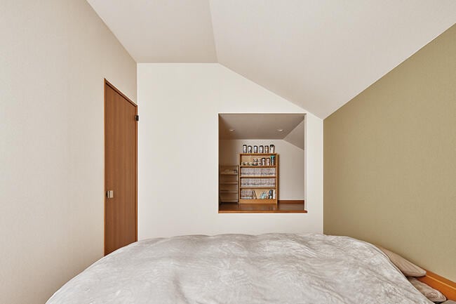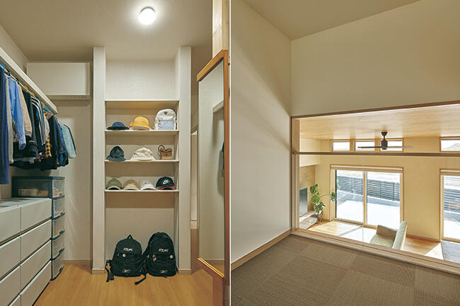 完成した新居は、高天井&大開ロリビングなどを設けながら、GX志向型住宅の基準を満たす、すぐれた断熱性能を実現。「以前の家が寒かったので、断熱性能の数値が高い複数の住宅メーカーを検討しました。当初は鉄骨系の家がよいと考えていたのですが、高効率の冷暖房機器などに頼るウエイトが高い印象を受けました。機器が故障したら暖かさが失われ、修理代もかかります。対してミサワホームの住まいは、構造体そのものの断熱性能が高く、機器に頼るウエイトが小さいと感じ、これが選んだ決め手のひとつになりました」 完成した住まいの断熱性能は、想像以上に高かったと語るKさま。「以前の家は、窓際が寒くて、空間全体を有効に使えていませんでした。この住まいは部屋のどこにいても室温が一定です。夜から朝にかけて室温が低下する度合いも、あきらかに小さいですね。ストレスなくおだやかに暮らせます」 高断熱による快適性は、奥さまも日々実感されているそう。「冬場のキッチンで炊事をしていても、足元が冷えないんです。家事がとても楽になりました」 120ミリ厚の木質パネルで構成された「木質パネル接着工法」の住まいは、断熱性能とともに耐震性能もすぐれており、多様な空間設計ができることも特長。このメリットを活かし、Kさま邸では2つの大収納空間「蔵」や、1.5階のスキップフロアもデザイン。「スキップフロアは子どもが遊ぶスペースとして使っています。リビングにいる親からも姿が見えるので、とても安心です」 住まいづくりでは、お子さまが自立心を育めることも重視。「蔵」や2階のファミリークロゼットは、親の手を借りずに片付ける習慣をお子さまに付けさせたいという想いから設けたもの。 その他、洗濯をはじめ効率的な家事動線や、静かな在宅ワークスペースの確保など、希望をすべて叶えた住まいで、快適な暮らしを楽しまれています。