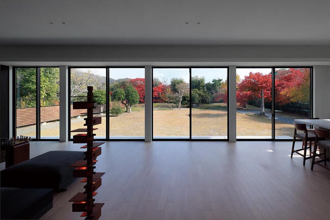 一見、住宅とは思えないモダンなデザインの二世帯住宅。都市の洗練された美意識が息づいています。